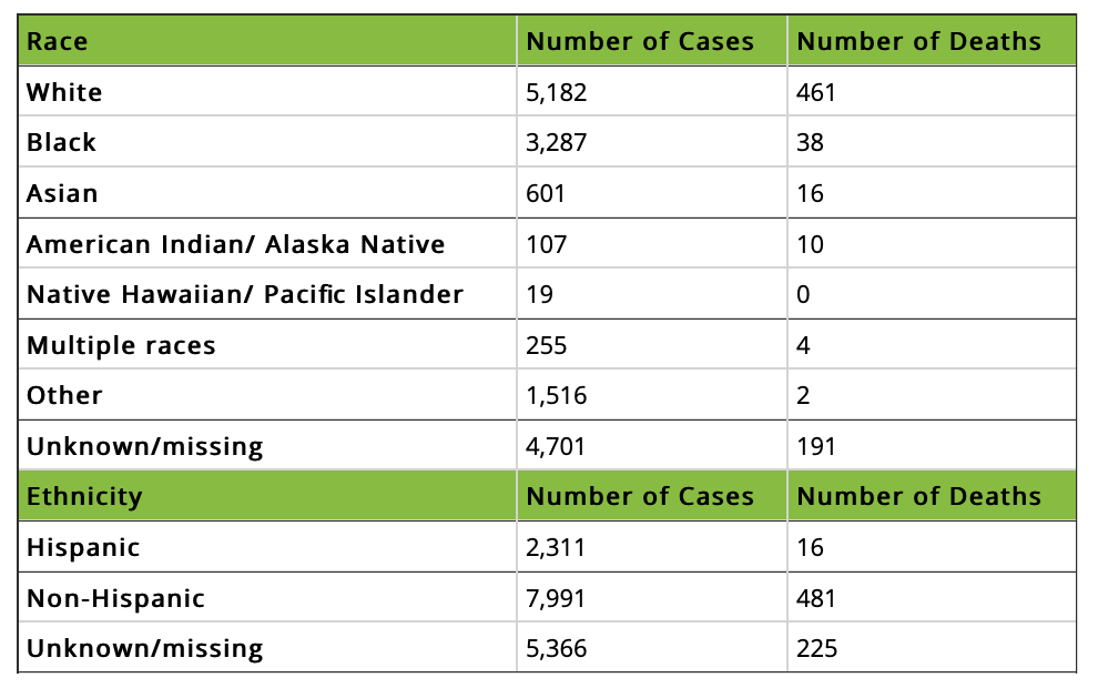 Una nueva gráfica del MDH muestra cómo la curva de casos registrados continua en ascenso; siendo el 14% de estos casos han sido detectados como Hispanos, 2% de las muertes también han sido identificadas como Hispanos. Resalta que son entre 30 años y 39 años las personas que más casos registran hasta el momento. Siga este enlace para mayor información.