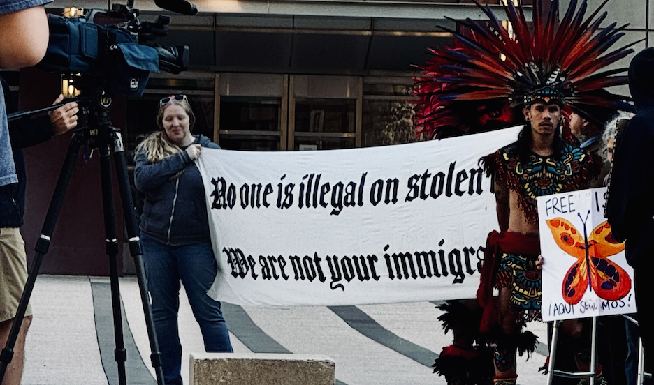 Activistas locales, incluyendo el Comité de Acción por los Derechos de los Inmigrantes de Minnesota ( MIRAC ), el Movimiento de Protectores Indígenas (IPM) y otros, se manifestaron el lunes 29 de septiembre a las 9:00 a. m. en la Plaza del Tribunal Federal de Minneapolis (300 S 4th St.) para exigir que el fiscal federal Joseph Thompson retire de inmediato los cargos contra Isavela López, poeta local, protectora del agua y organizadora comunitaria. López enfrenta hasta ocho años de prisión después de que agentes federales la maltrataran durante una protesta contra el ICE en junio.