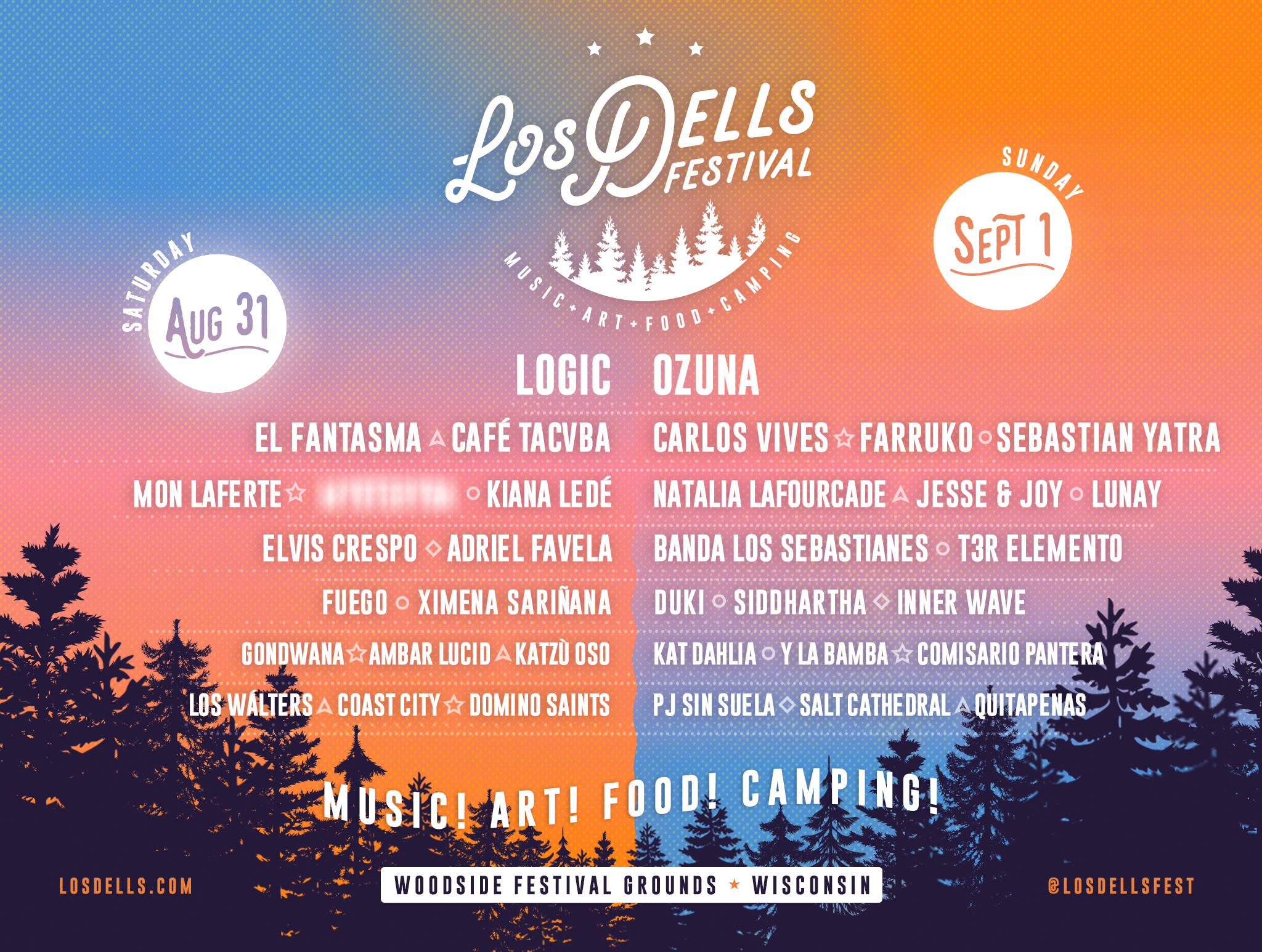 OZUNA, el artista internacional que domina los charts de música, encabezada el festival el domingo 1 de septiembre y el cotitular LOGIC, el rapero, cantante y compositor estadounidense, cerrará la primera noche de este gran evento el sábado 31 de agosto. El Fantasma, Café Tacvba y Mon Laferte también tocarán ese mismo día. Carlos Vives, Farruko, Sebastian Yatra y Natalia Lafourcade, entre otros, se presentarán durante el segundo día del festival.