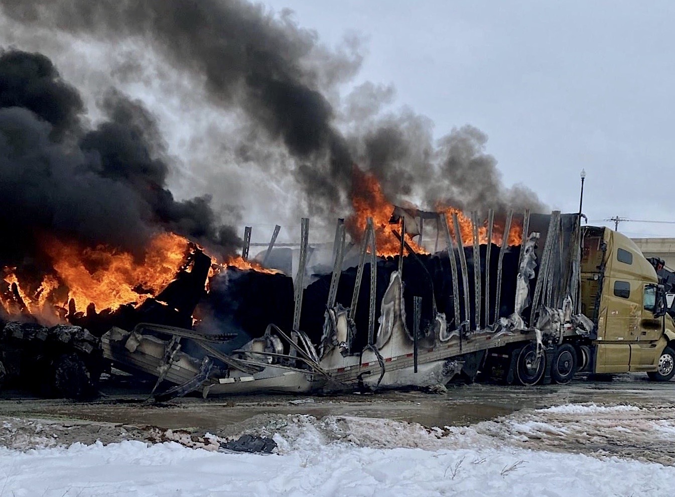 Testigos indican que el semirremolque se detuvo en la I-94 en medio del tráfico. Los testigos también indican que el conductor pudo haber estado quitando nieve del parabrisas. Parece que la parada que no fue de emergencia pudo haber jugado un papel en el inicio de la cadena de eventos en el accidente.