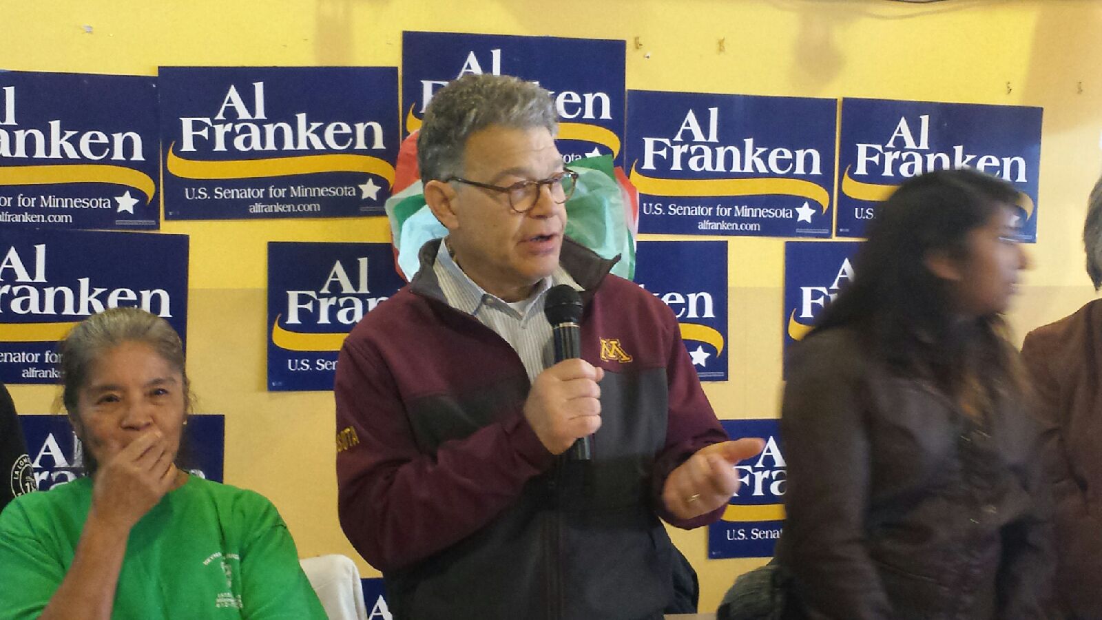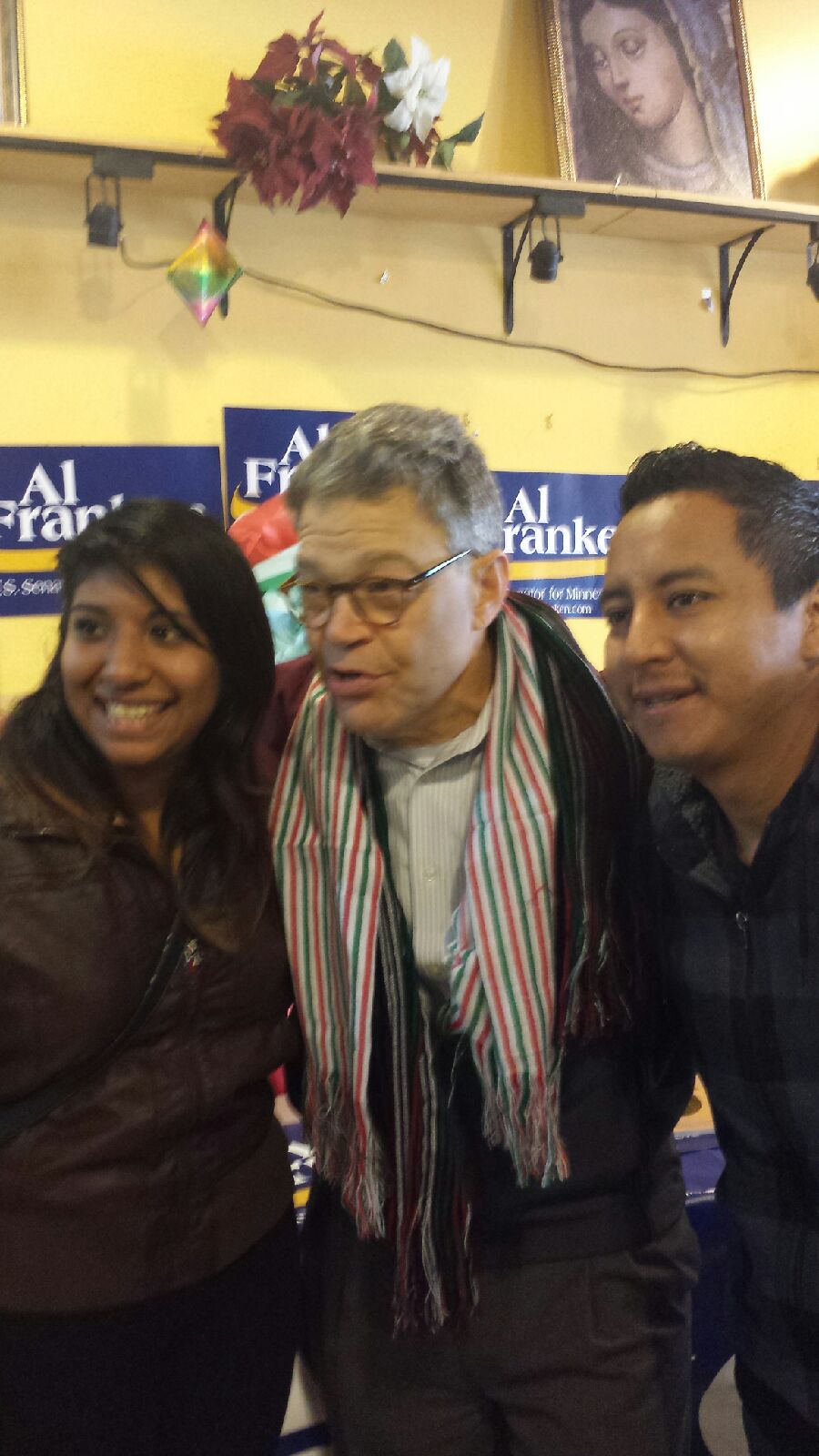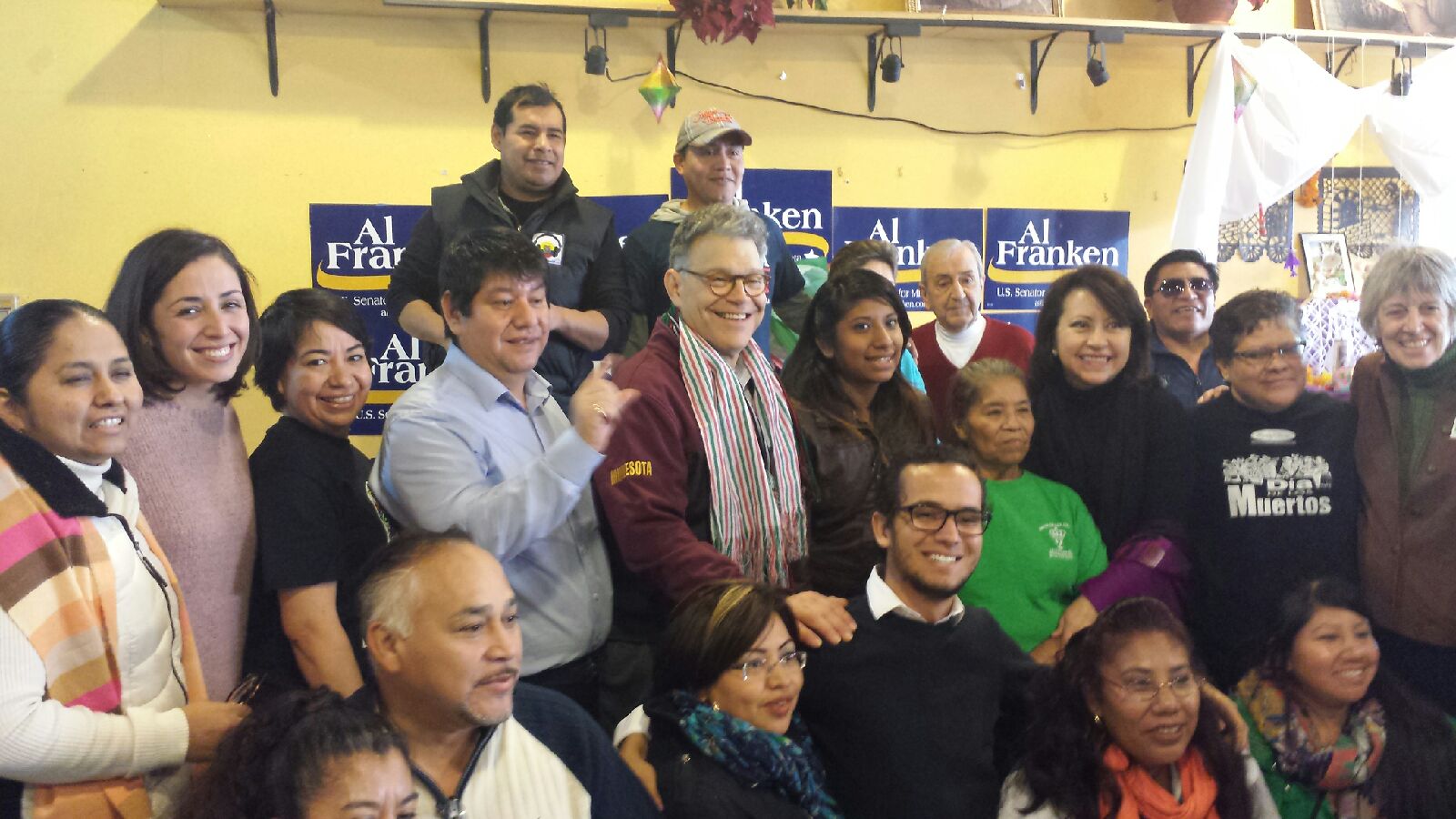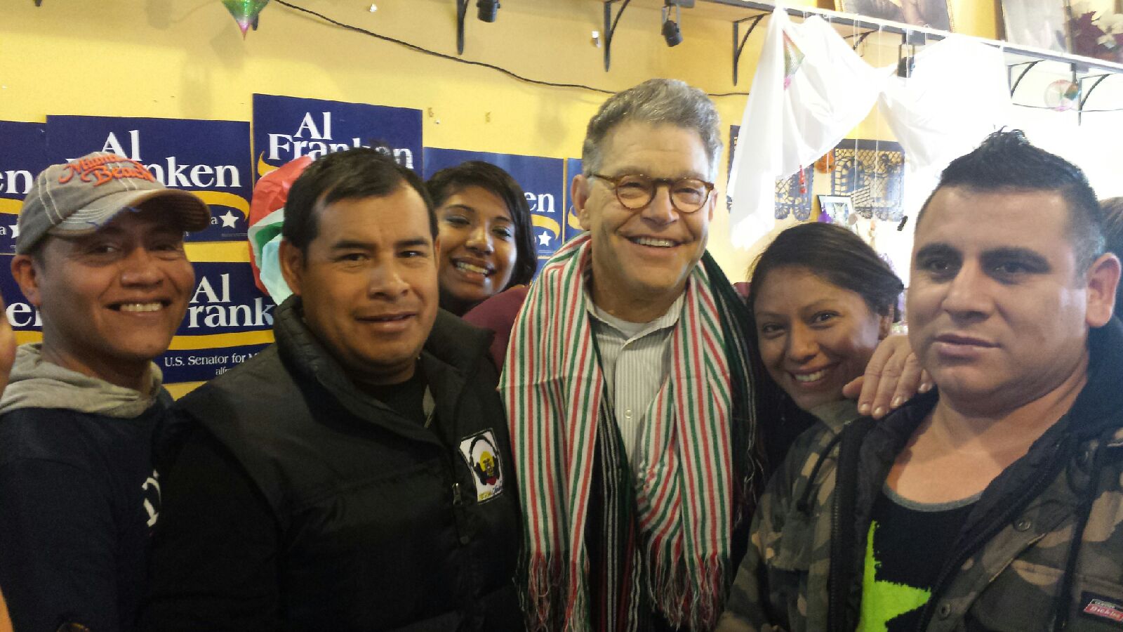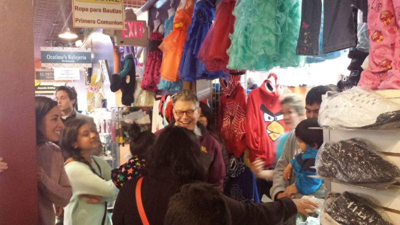 Por la mañana del día Sábado, organizaciones locales, politicos y activistas recibieron en compañía de locatarios y comenzales a el candidato por la Senatoria en Minnesota y actual Senador Al Franken.