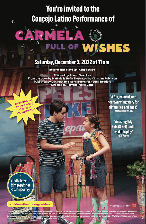 Carmela Full of Wishes se presenta en el Children’s Theatre Company de Minneapolis desde esta semana y hasta el día 4 de Diciembre.