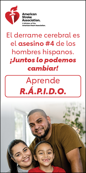 Identificar los síntomas y llamar al 911 rápidamente puede marcar la diferencia entre la vida y la muerte o una discapacidad a largo plazo. Según los datos de la encuesta sobre el derrame cerebral de la American Stroke Association (la Asociación Americana del Derrame Cerebral), solo el 39 % de los encuestados de origen hispano-latino manifestaron estar familiarizados con el acrónimo en inglés de las señales de alerta de un ataque o derrame cerebral, F.A.S.T., y solo el 42 % podía nombrar correctamente dos señales de alerta sin ayuda. Para ayudar a cerrar la brecha entre el conocimiento y la acción, la American Stroke Association, una división de la American Heart Association (la Asociación Americana del Corazón), lanza Juntos Contra el Derrame Cerebral, una campaña culturalmente relevante en español para crear conciencia entre las audiencias de habla hispana sobre el uso y comprensión de R.Á.P.I.D.O., un acrónimo en español de señales de advertencia de un ataque o derrame cerebral que puede salvar vidas.