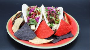 - Tacos fritos en un palito: Dos tacos rellenos, uno relleno con chorizo verde y papas y otro relleno con una mezcla vegetariana de frijoles negros y maíz, fritos, cubiertos con queso desmenuzado y un poco de salsa de guacamole y servidos en un palito. (Del 28 de agosto al 2 de septiembre solamente)