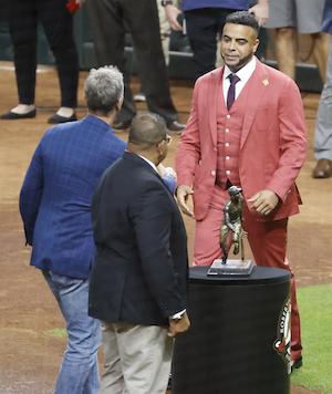 Antes de que comenzase el juego entre los Astros de Houston y los Bravos de Atlanta para el segundo partido de la Serie Mundial, el diamante del Minute Maid Park, fue el escenario ideal para que el 50 Premio Roberto Clemente le fuese entregado al veterano toletero dominicano Nelson Cruz por sus iniciativas filantrópicas.
