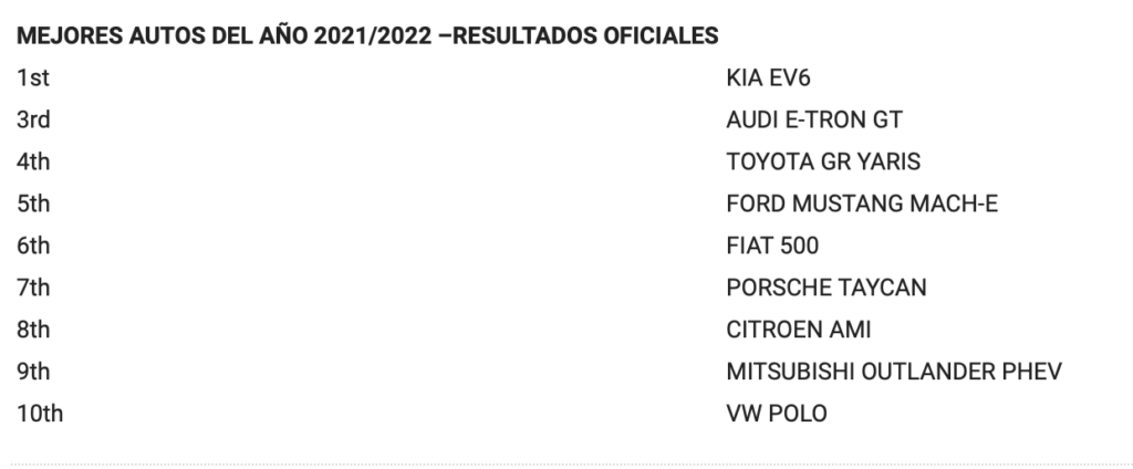 Los “Mejores Autos del Año del periodo entre el 2021 y el 2022”.se dieron a conocer a través de un panel de diseñadores de automóviles, ingenieros, titanes de la industria automotriz, leyendas del automovilismo, periodistas especializados, locutores y profesionales de los medios de renombre mundial.