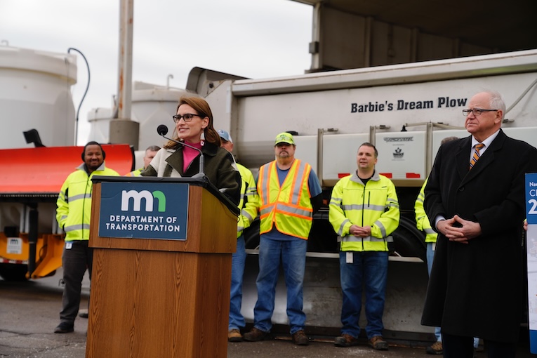 El gobernador Tim Walz, la vicegobernadora Peggy Flanagan y el Departamento de Transporte de Minnesota (MnDOT) anunciaron hoy los ocho nombres ganadores del concurso Name a Snowplow 2023-24. Taylor Drift, Beyonsleigh y Fast and Flurrious se unen a la flota quitanieves del estado como ganadores del concurso. Cada quitanieves recién nombrado será asignado a uno de los ocho distritos del MnDOT. Más de 32.500 votantes votaron en la contienda de este año. Se adjuntan fotos del evento.