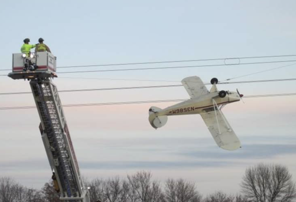 La investigación inicial indicó que el avión, un avión Piper mono motor viajaba al sur, golpeó un grupo de líneas de energía y se suspendió en la guía, quedando totalmente al revés. Las autoridades dijeron que una vez que se desenergizó la línea de potencia, el piloto fue rescatado del avión.