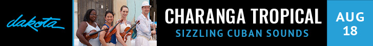 Con un amplio repertorio de la música cubana, un ritmo impresionante con presentaciones constantes en populares lugares de las ciudades gemelas, un interesante ensamble de personalidades y con la seguridad de que este, el show del día Jueves 18 de Agosto por la noche será inolvidable, llega al Dakota Jazz Club Charanga tropical, una consentida, experimentada banda de la escena musical y de la salsa en las ciudades gemelas.