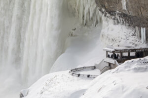 A pesar del intenso frío, en la localidad de Niagara Falls, este sábado los turistas seguían acudiendo para fotografiar las famosas cataratas, que en esta época de año están rodeadas por un paisaje congelado.