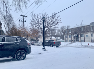Suficiente nieve como para crear mas estragos al final de la jornada y mas aun para lograr captar el tiempo de muchos de los residentes y trabajadores de la ciudad en su afán y labor de limpieza de banquetas, entradas a casa hogar, carreteras y espacios comunes en comercios.