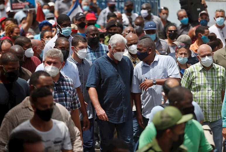Miguel Díaz-Canel se trasladó a San Antonio de los Baños pocas horas después de que se difundiera esa primera protesta, y posteriormente compareció en la televisión estatal instando a sus partidarios a salir a las calles listos para el “combate”.