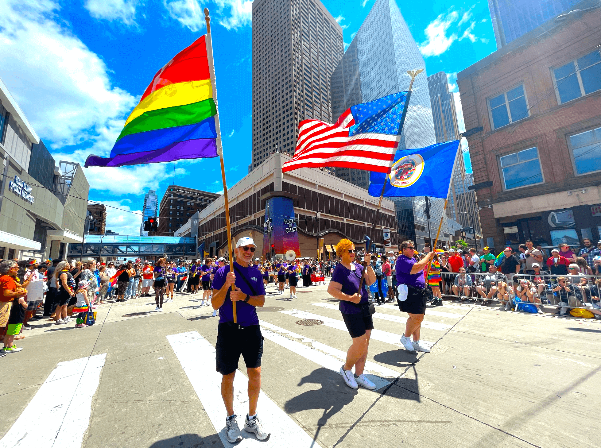 Justo detrás de los tradicionales líderes “Marshalls” del desfile, el gobernador Walz de Minnesota y representantes de la política y gobierno local cómo las senadoras Klobuchar y Omar, estuvieron desfilando. Decenas de corporaciones importantes de la región también celebraron en apoyo a las comunidades GLBTQ+, Cargill, Target, Wells Fargo, entre otras estuvieron en el evento paseando por Hennepin Avenue ante un público plenamente identificados con la razón del evento.