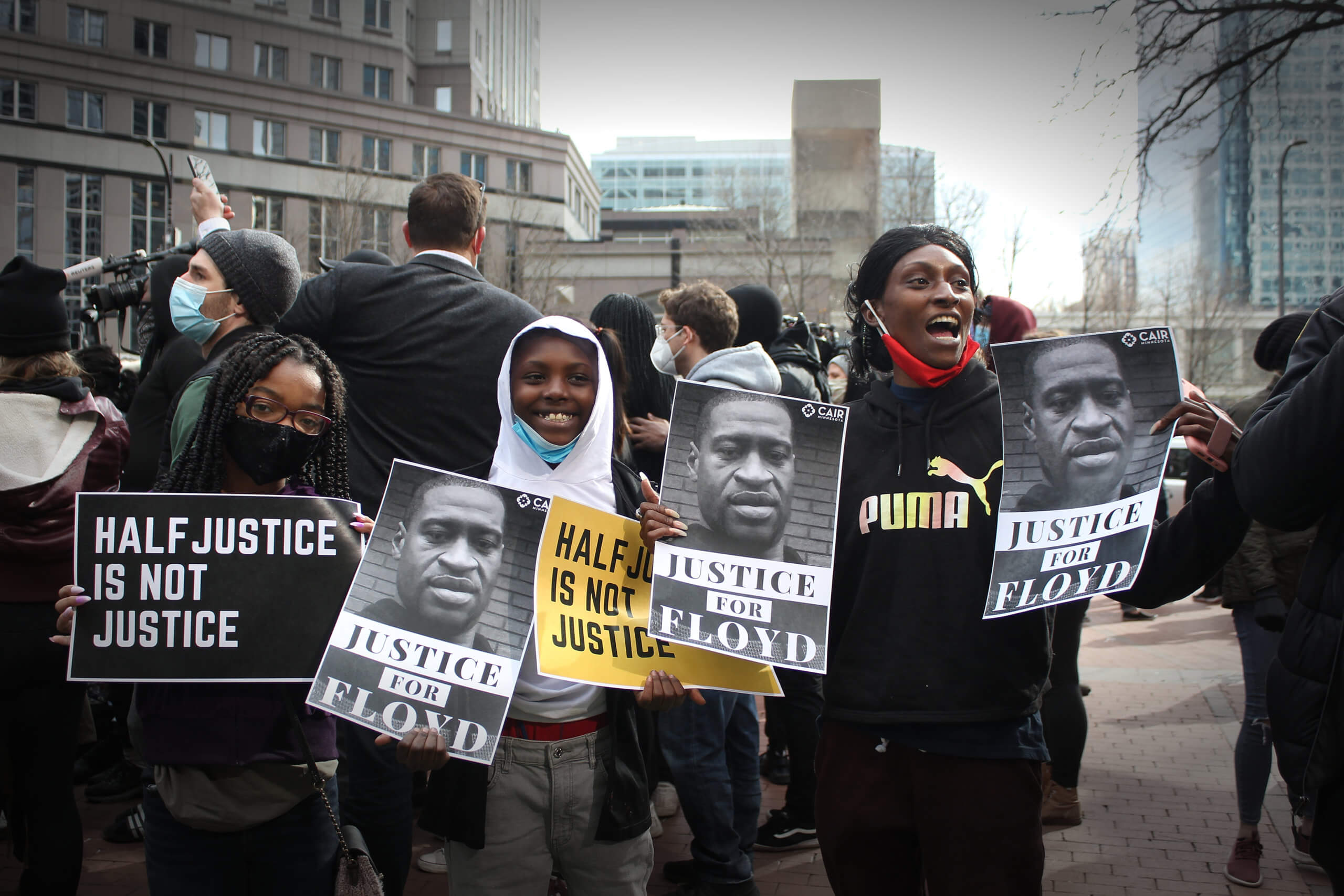 Howard ha vivido 40 años en Mineápolis y junto a sus hijos Aniya y Howard levantaban sonrientes carteles con el retrato de George Floyd y con mensajes de “justicia a medias no es justicia”.