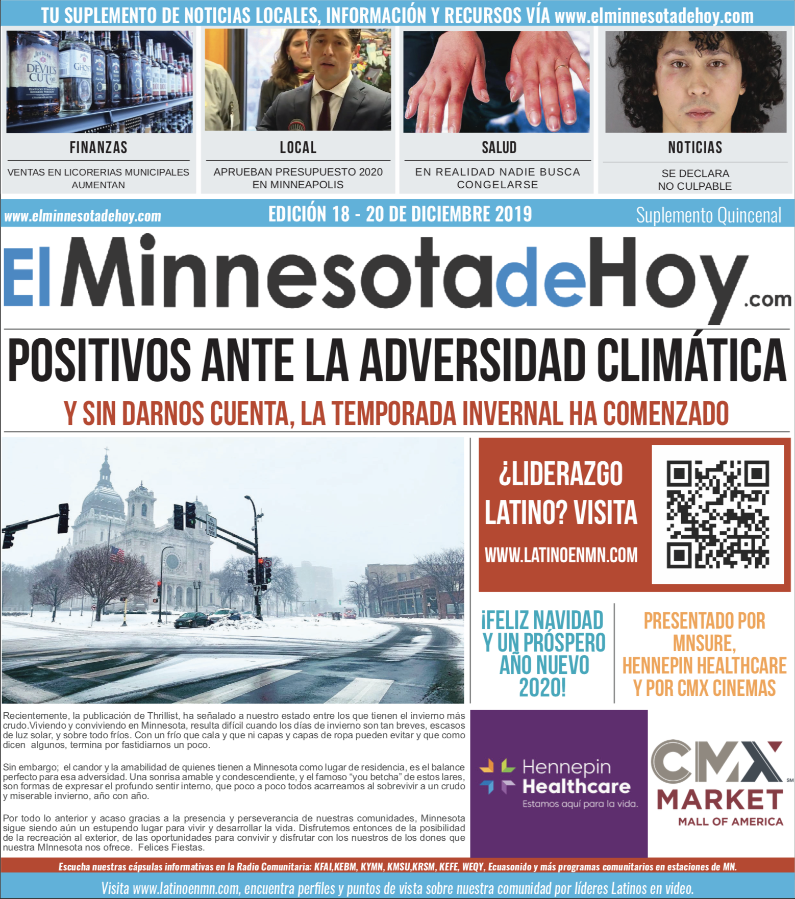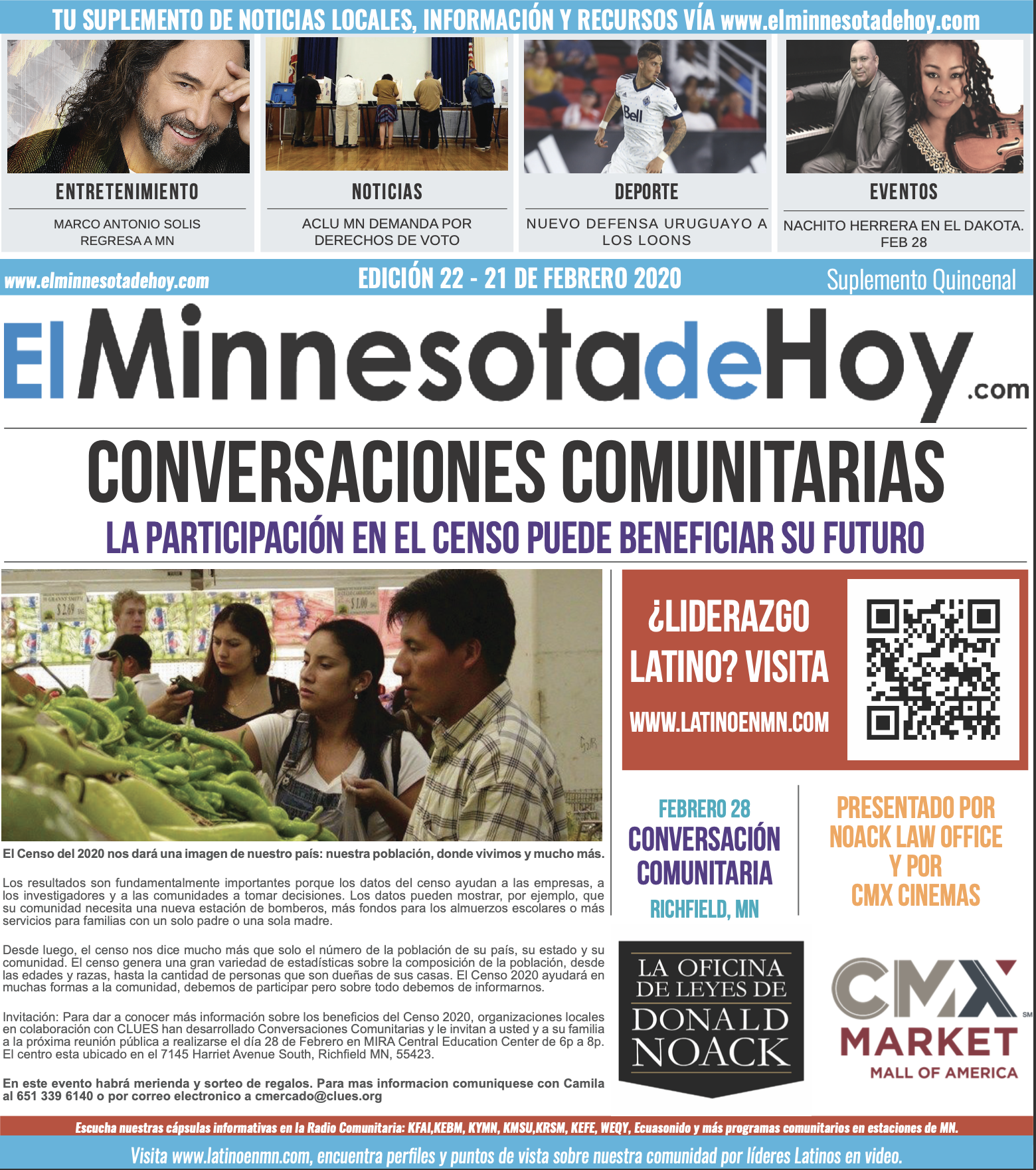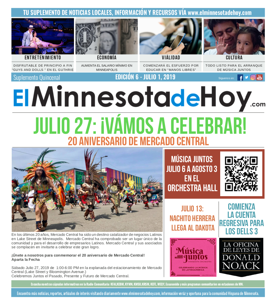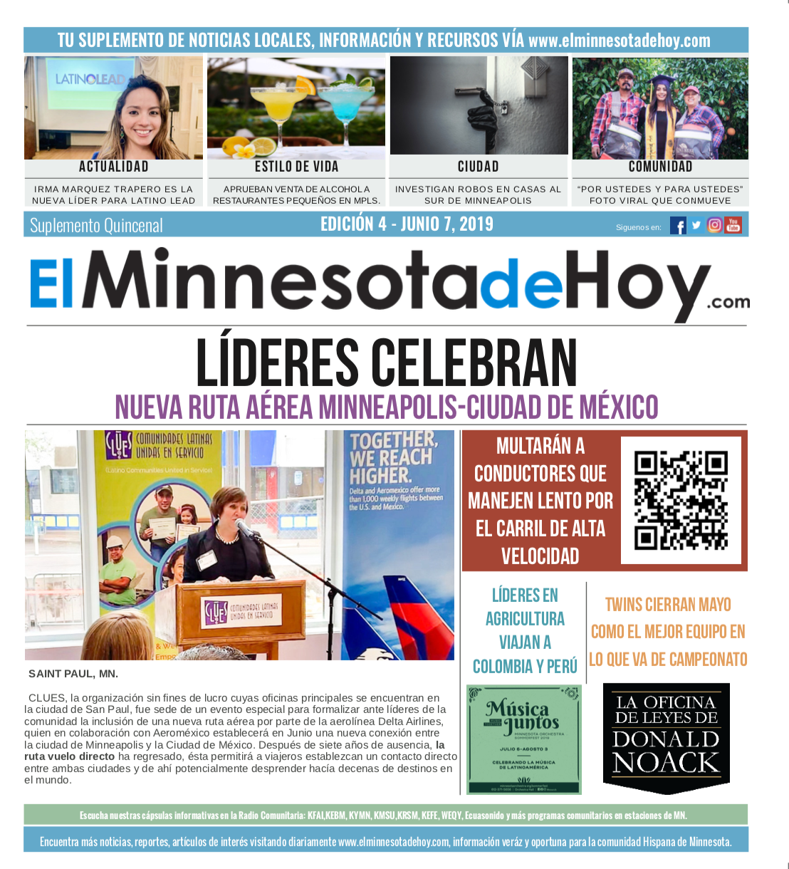 A print edition of El Minnesota de Hoy produced by MLatino Media became available since the month of April 2019. A bi-weekly #MNHoy insert, featured in Revista Integra, highlights top local news and stories directly from our daily news website. www.elminnesotadehoy.com