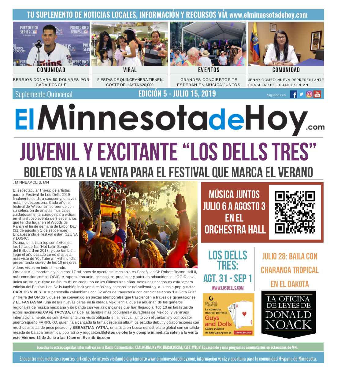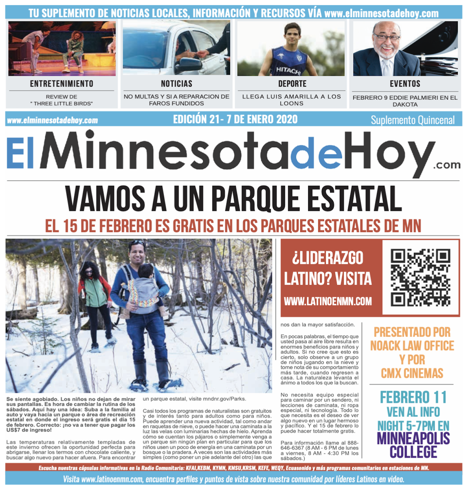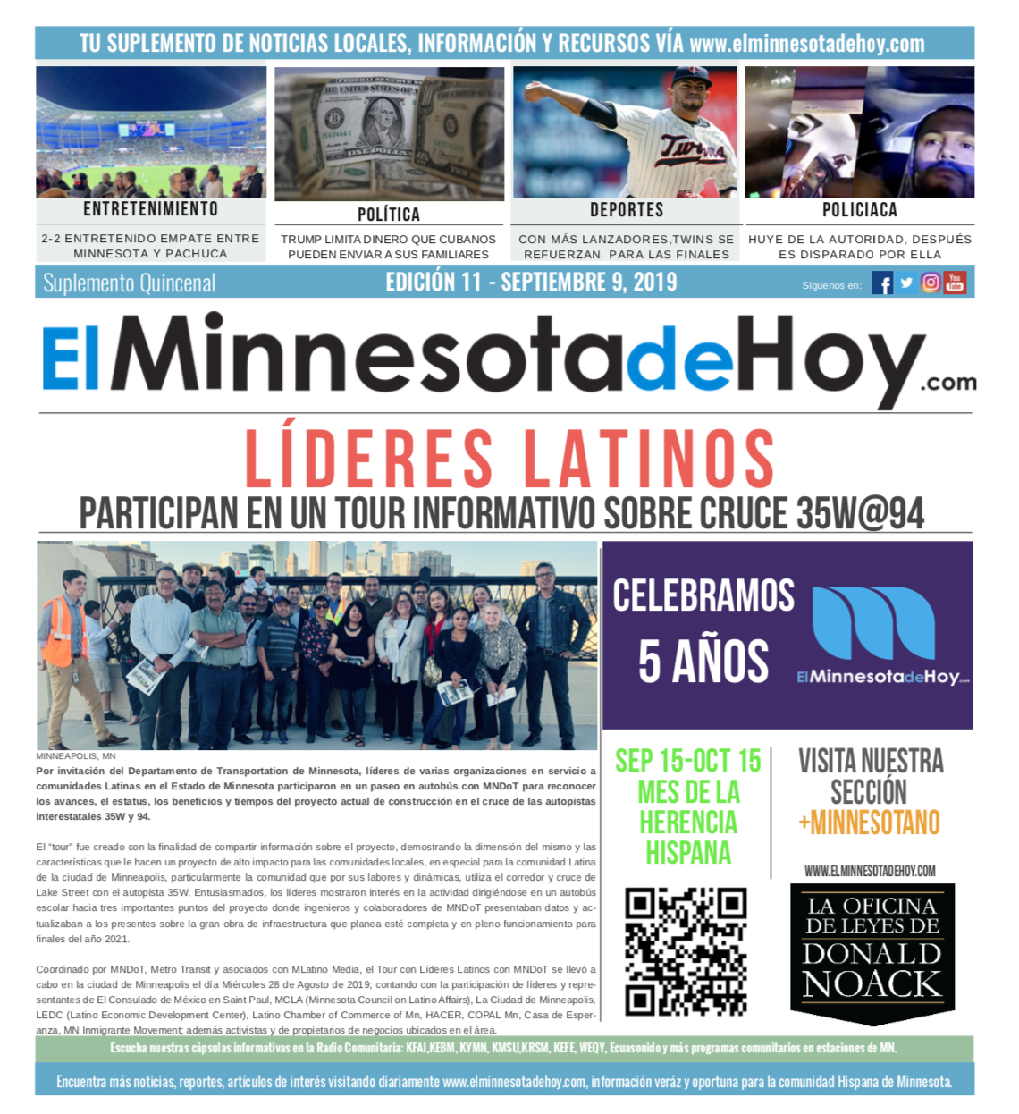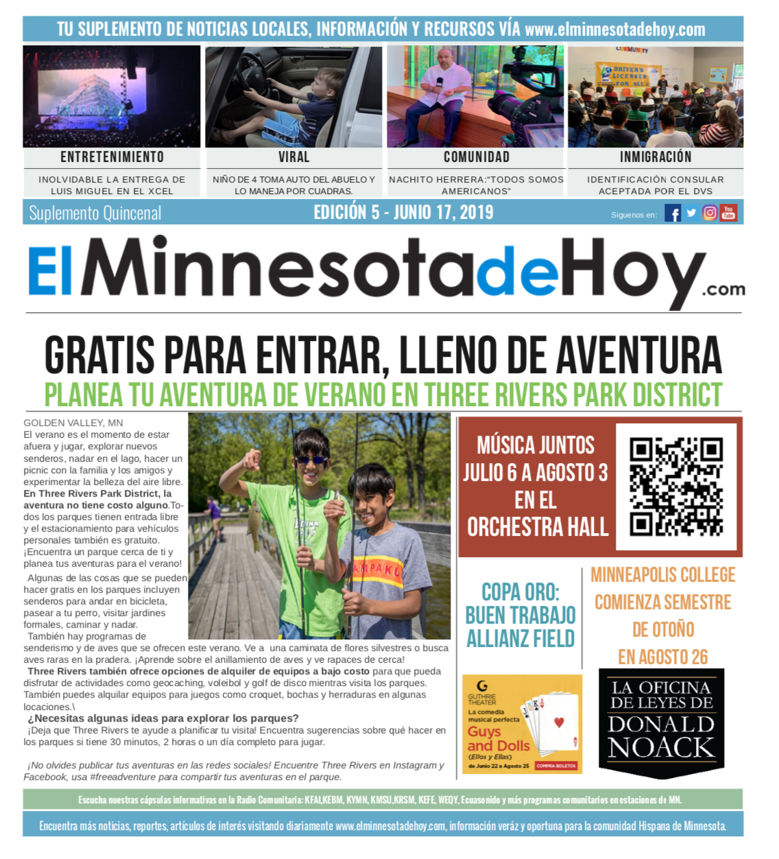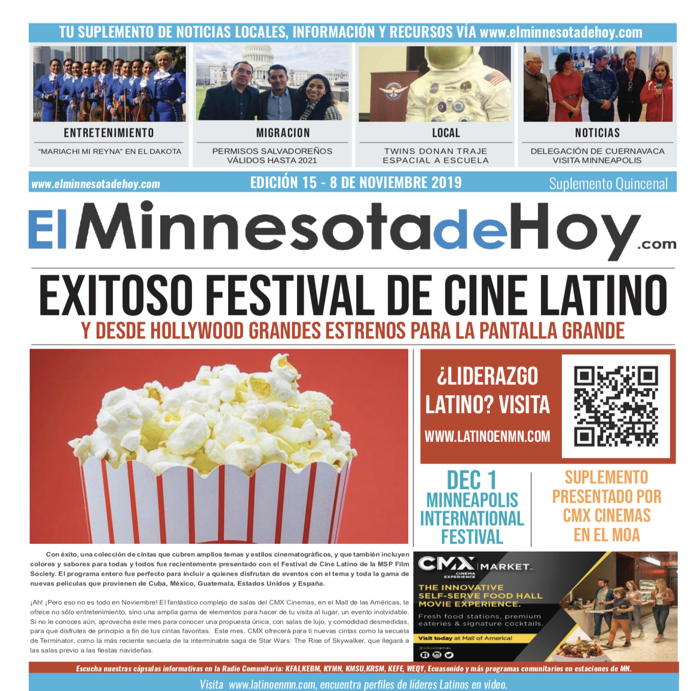 A print edition of El Minnesota de Hoy produced by MLatino Media became available since the month of April 2019. A bi-weekly #MNHoy insert, featured in Revista Integra, highlights top local news and stories directly from our daily news website. www.elminnesotadehoy.com