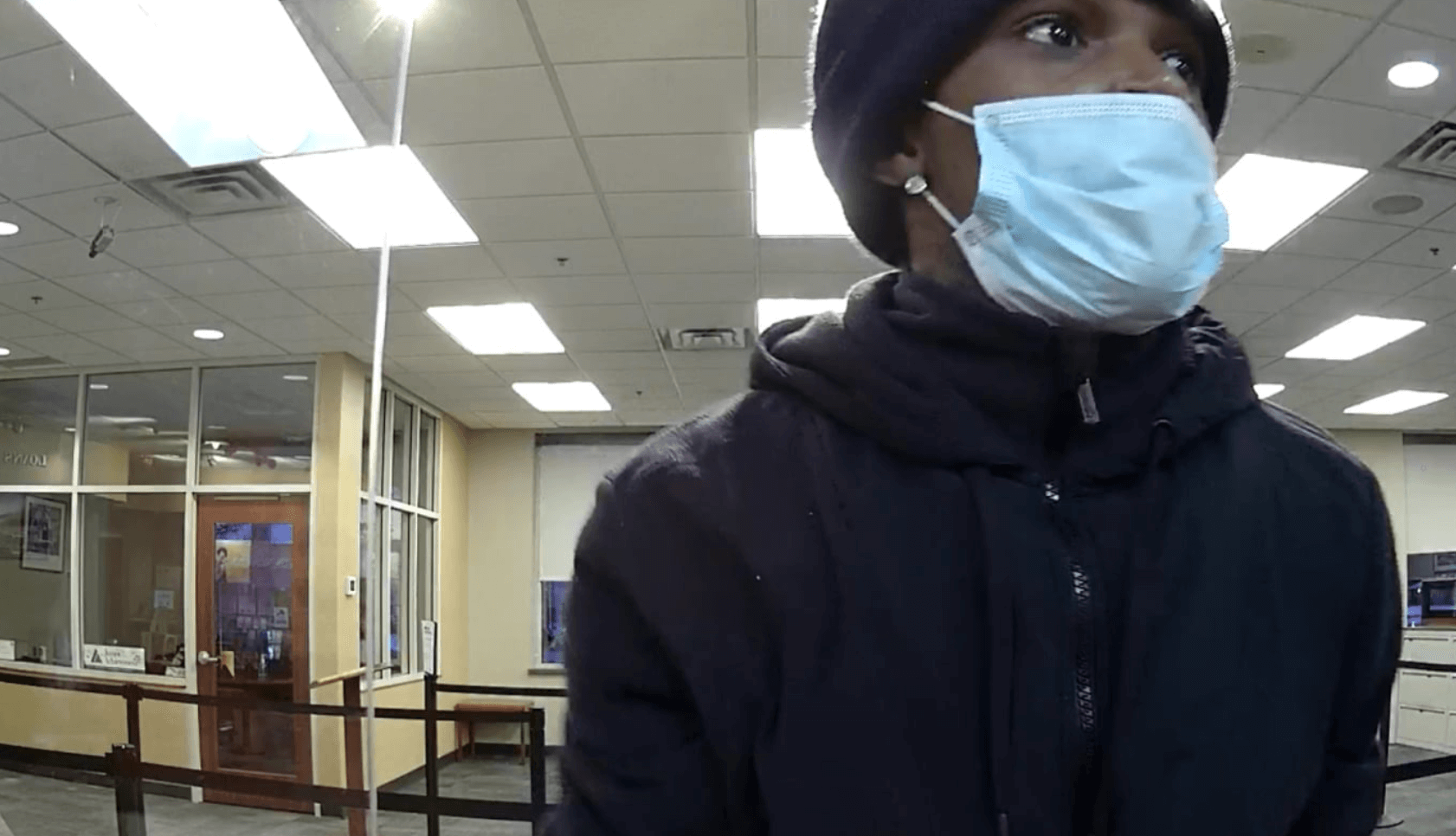 Aproximadamente a las 6 pm del martes 23 de febrero, entró en el TCF Bank en la cuadra 400 de Lexington Parkway North, sacó un arma, apuntó al personal y exigió dinero.