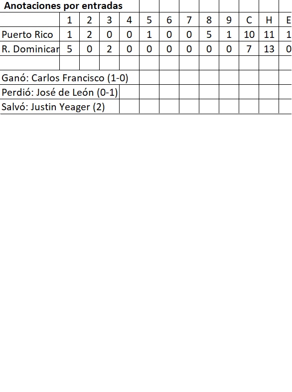 La novena de Puerto Rico impulsó 11 imparables y se posicionó como la tercera en la clasificación, por detrás de Leones, que también ha ganado dos juegos y perdido dos.