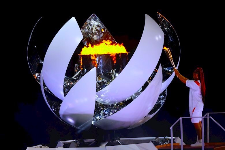 Fue precisamente una deportista, la tenista y gran esperanza de medalla nipona Naomi Osaka, la encargada de encender el pebetero olímpico en el Estadio Olímpico tokiota, tras subir una escalinata hacia una espectacular estructura metálica esférica inspirada en el sol y que se abrió como una flor.